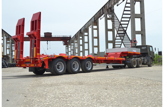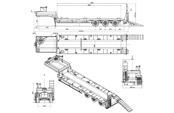 47000 кг, шины 445/65R22.5 или 395/85R20 / 6+1, платформа 9300 (10300 до трапов) x 2500 с уширителями до 3000 мм, механические трапы, пневматическая подвеска, съемные стойки 1500 мм