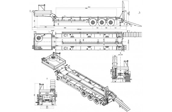 44500 кг, шины 395/85R20 или 445/65R22,5 / 6+1, платформа 12000 (12862 до трапов) x 2530 с уширителями до 3030 мм, ССУ 1510 мм, рессорная или пневматическая подвеска, раздвижные коники, механические трапы с пружиной