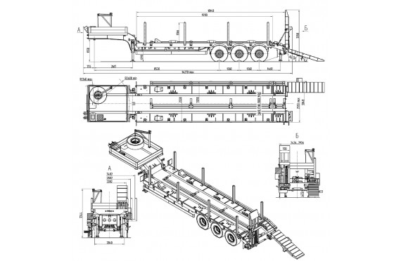 41800 кг, шины 395/85R20 или 445/65R22,5 / 6+1, платформа 9280 (10142 до трапов) x 2530 с уширителями до 3030 мм, ССУ 1550 мм, рессорная или пневматическая подвеска, съемные стойки