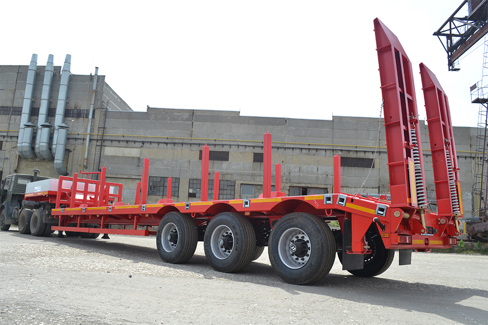 39000 кг, шины 385/65R22,5 или 445/65R22,5 / 6+1, платформа 11461 по трапам x 2500 с уширителями до 3000 мм, треугольные аппарели, ССУ 1430 мм, рессорная подвеска, съемные стойки или раздвижные коники 1500 мм, с бортами или без