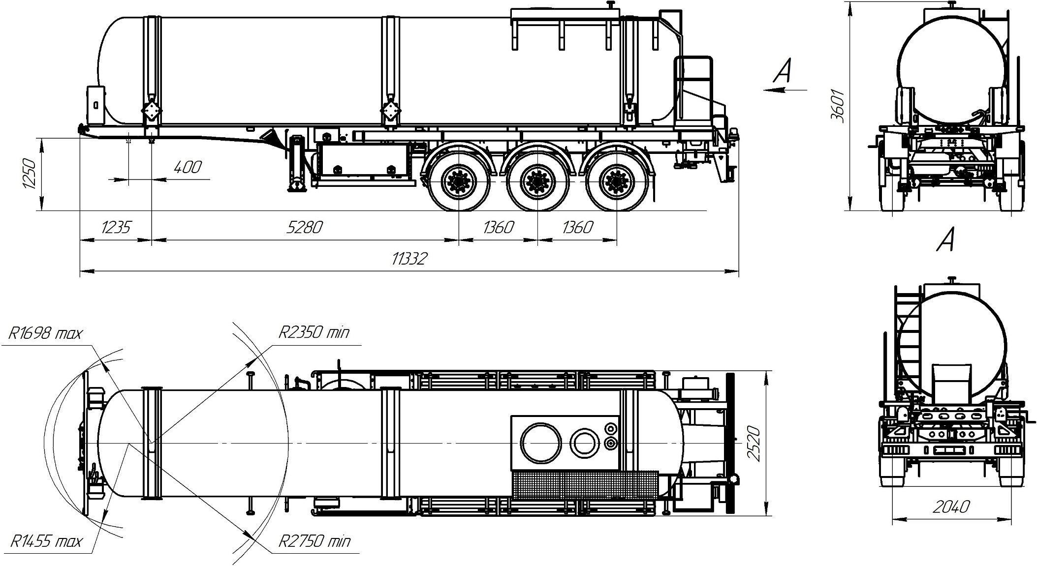 Материал: химстойкое стекловолокно, емкость: 23 куб.м., сечение круглое, конструкция: крепление: при помощи стяжных лент, перевозимые жидкости: удобрения КАС, пестициды, гербициды, интексиды, автошины 385/65R22,5; первая ось - подъемная.
